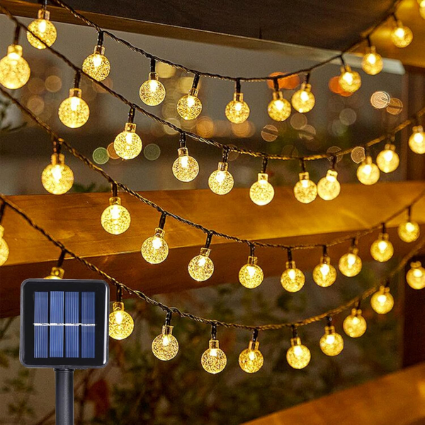 FILO DI LUCI DA ESTERNO CON PANNELLO SOLARE PALLINE DECORATIVE 11M 50 LUCI