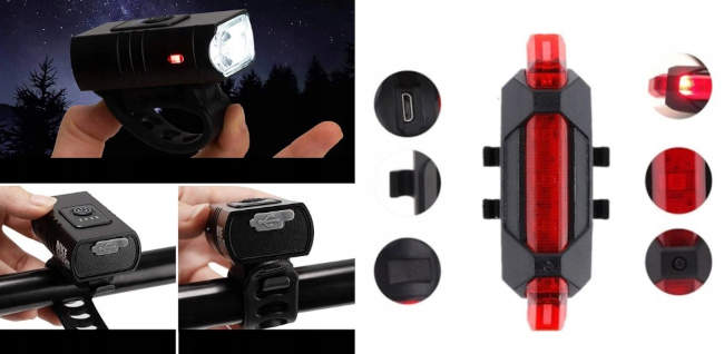 KIT LUCE ANTERIORE PER BICI 1600LM + LUCE POSTERIORE CON RICARICA USB
