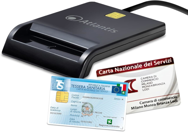 Il lettore Smart Card Atlantis consente di leggere ogni Smart Card per firme digitali, pagamenti on line, Carta Nazionale dei Servizi (CNS), Carta Regionale dei Servizi (CRS), Tessera Sanitaria, etc..., grazie alla piena compatibilità con i principali standard come PC/SC, ISO-7816, T=0, T=1, FISC IC