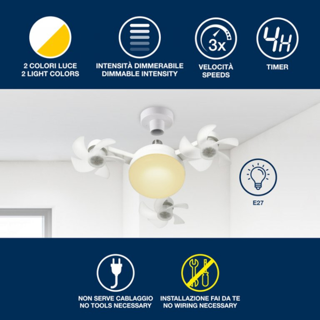 Ventilatore da soffitto con doppia funzione: ventilazione e illuminazione