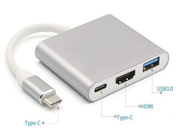 HUB USB-C 3.2 5GBPS 3 IN 1 HDMI 4K + USB-A 3.2 + USB-C PD 100W IN ALLUMINIO
