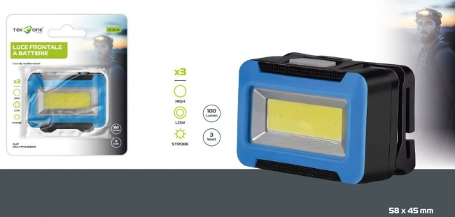 TORCIA FRONTALE A BATTERIA CON CLIP 100LM 3W NERA-BLU TO-BL188