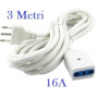 Prolunga Lineare 3mt Spina 16A 2P+T e Presa 10/16A 2P+T Bipasso Colore Bianco Carico massimo 3500W ...