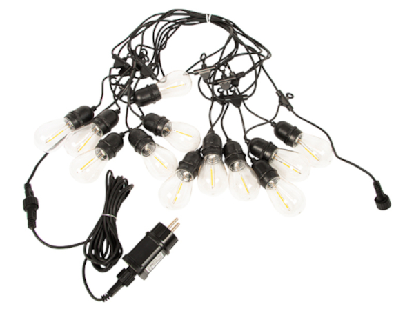 Questa catena luminosa da giardino lunga 9m, dotata di 12 lampadine LED E27, e' l'aggiunta perfetta a qualsiasi giardino, patio o balcone