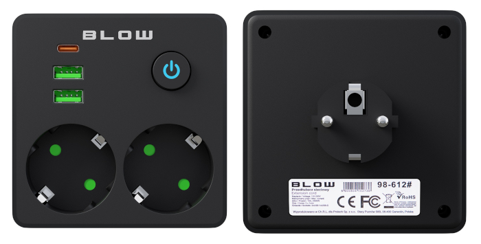 ADATTATORE CON SPINA SCHUKO E 2 PRESE SCHUKO + 2 USB + 2 TYPE-C CON INTERRUTTORE NERO