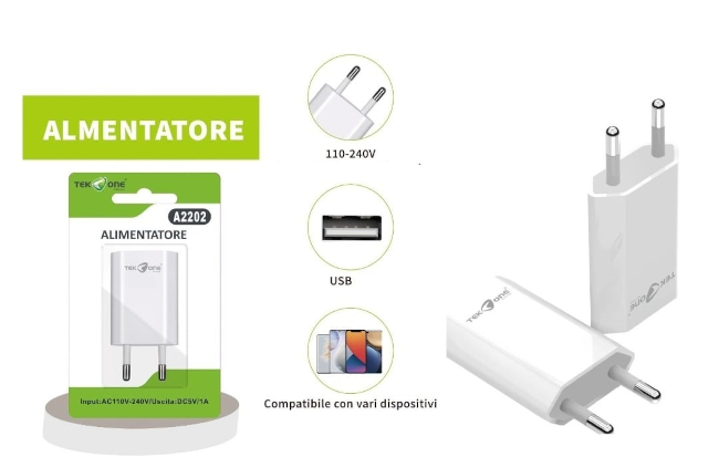 CARICABATTERIA USB 5V 1A A2202 BIANCO