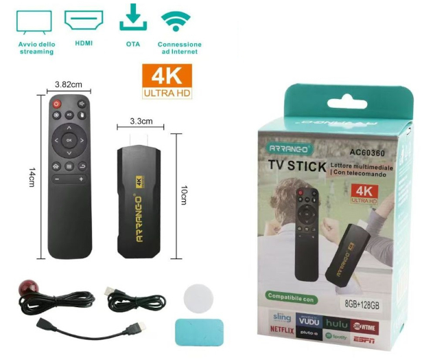 TV STICK HDMI 4K 8GB RAM + 128GB ROM