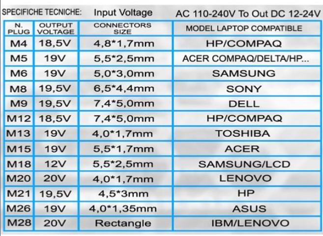 ALIMENTATORE UNIVERSALE PER NOTEBOOK 120W 13 TIPS