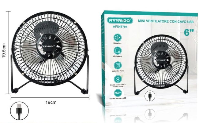 MINI VENTILATORE CON CAVO USB 6 POLLICI COLORI VARI