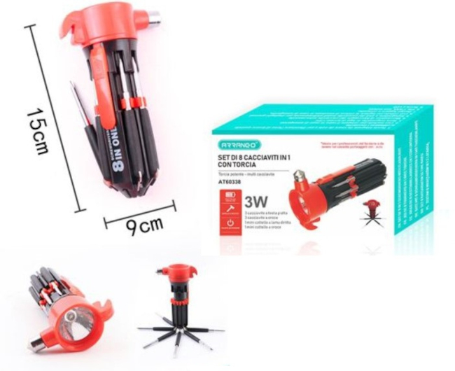 SET DI 8 CACCIAVITI IN 1 CON TORCIA 15X9CM