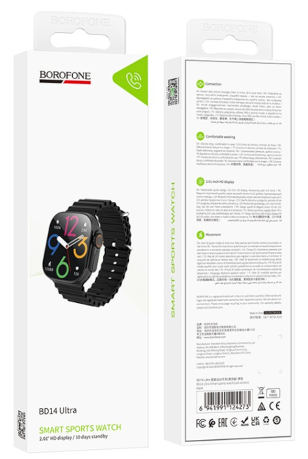 Lo Smartwatch Borofone BD14 Ultra è uno smartwatch moderno con un ampio schermo TFT, che offre una gamma di funzioni di monitoraggio e comunicazione in un elegante alloggiamento
