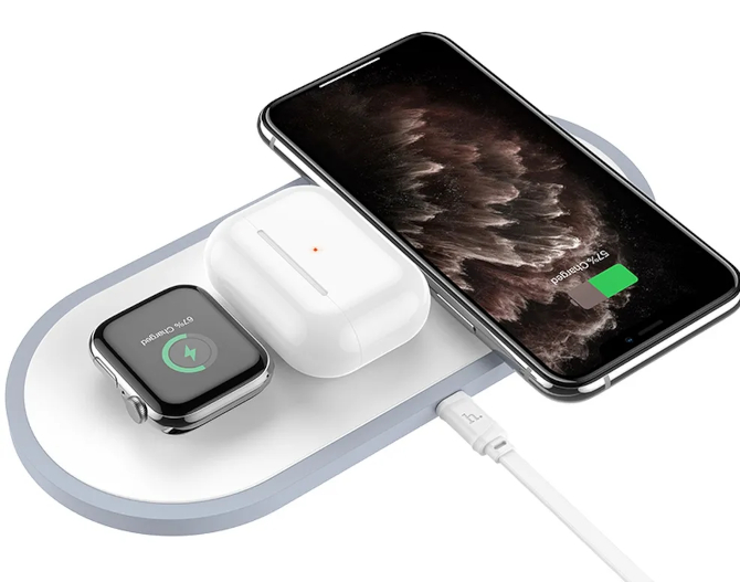 Hoco CW24 è un caricabatteria a induzione versatile che ti permette di ricaricare contemporaneamente smartphone, Apple Watch e AirPods. Le sue dimensioni compatte e il design elegante lo rendono la scelta ideale per l'uso domestico e in ufficio
