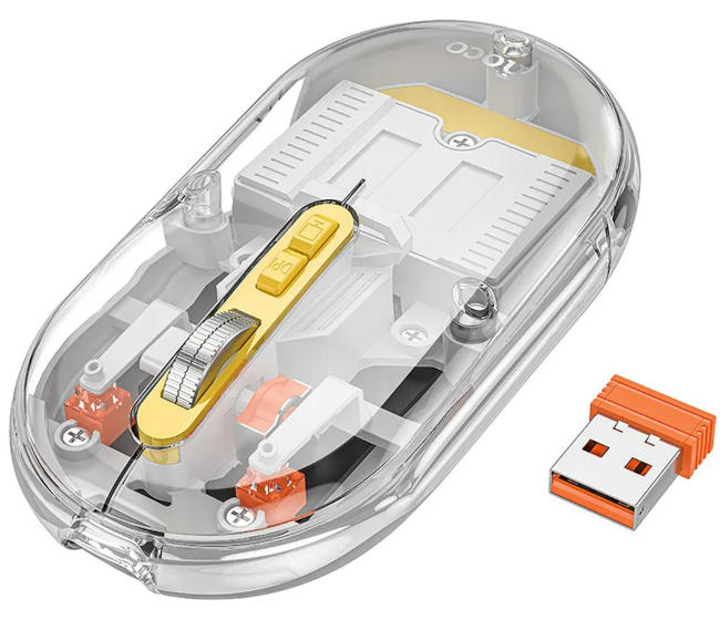 MOUSE WIRELESS RICARICABILE 2.4GHZ + BLUETOOTH HOCO GM35 TRASPARENTE GRIGIO