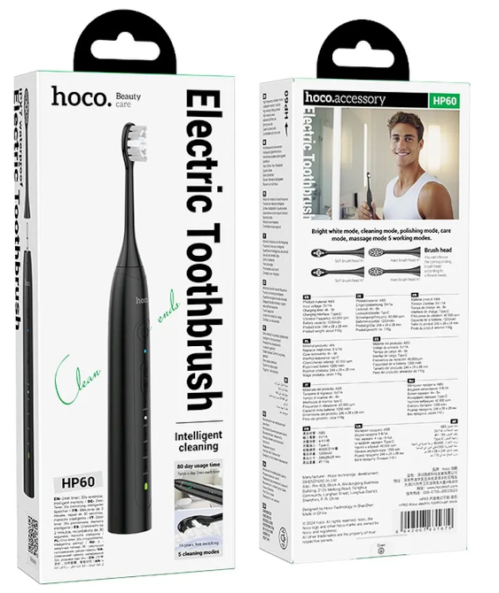 Hoco HP60 e' uno spazzolino elettrico avanzato che combina tecnologia moderna e prestazioni eccezionali. Con vibrazioni fino a 40.000 volte al minuto e diverse modalita' di utilizzo, offre una pulizia efficace e un'igiene orale completa