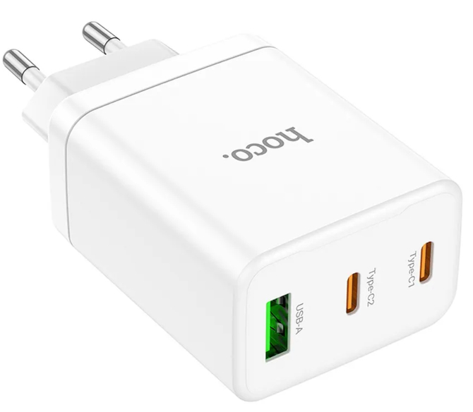 CARICABATTERIA HOCO N33 2XUSB-C + 1XUSB-A 35W 3A QC3.0 PD BIANCO