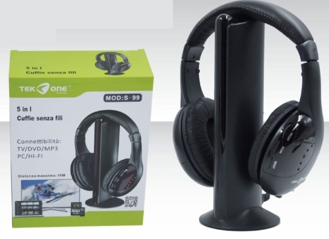 CUFFIE WIRELESS 5 IN 1 PER TV/DVD/MP3/PC/HI-FI S-99 NERE
