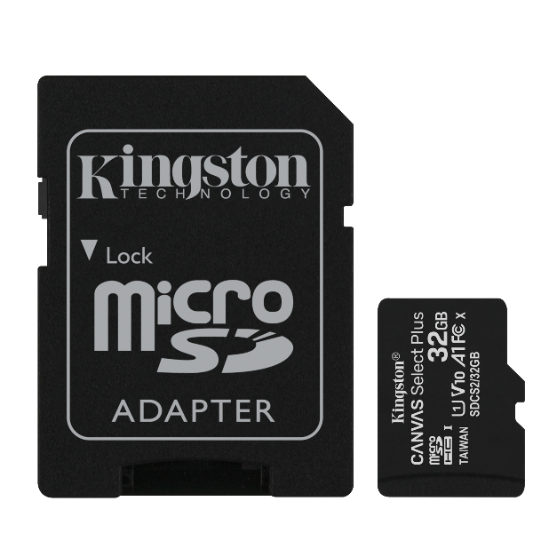 MICRO SD HC KINGSTON 32 GB CON ADATTATORE SD CANVAS SELECT PLUS CLASS 10