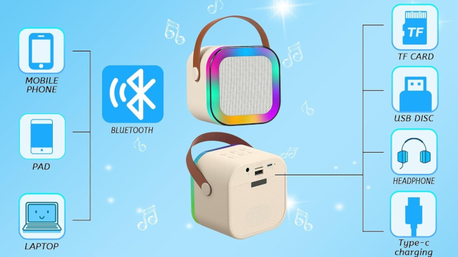 Ascolta la tua musica preferita e canta senza limiti grazie alla cassa Bluetooth con microfono karaoke. Grazie alla tecnologia wireless Bluetooth 5.2, all'audio stereo di alta qualita' e al design compatto, e' la soluzione perfetta per feste in casa, incontri con gli amici e divertimento in famiglia