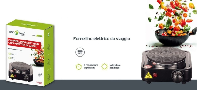 FORNELLO ELETTRICO CON PIASTRA IN GHISA 500W NERO TC1008N