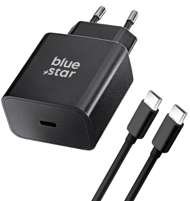 CARICABATTERIA BLUE STAR USB-C CON CAVO TYPE-C TYPE-C PD QC4.0 3A 25W NERO