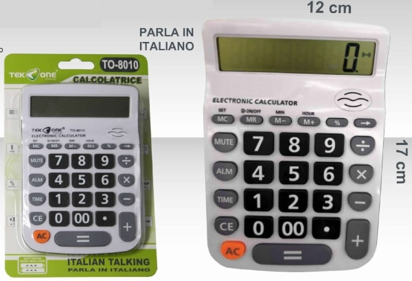 CALCOLATRICE ELETTRONICA ITALIAN TALKING GRIGIA TO-8010
