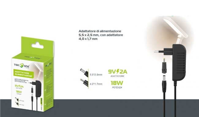 ALIMENTATORE 5.5X2.5MM CON ADATTATORE 4.0X1.7MM 9V 2A 18W TO1500