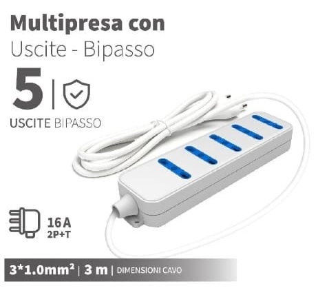 Numero di uscite: 5 prese bipasso 16A 250V