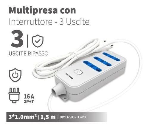 Numero di uscite: 3 prese bipasso 16A 250V