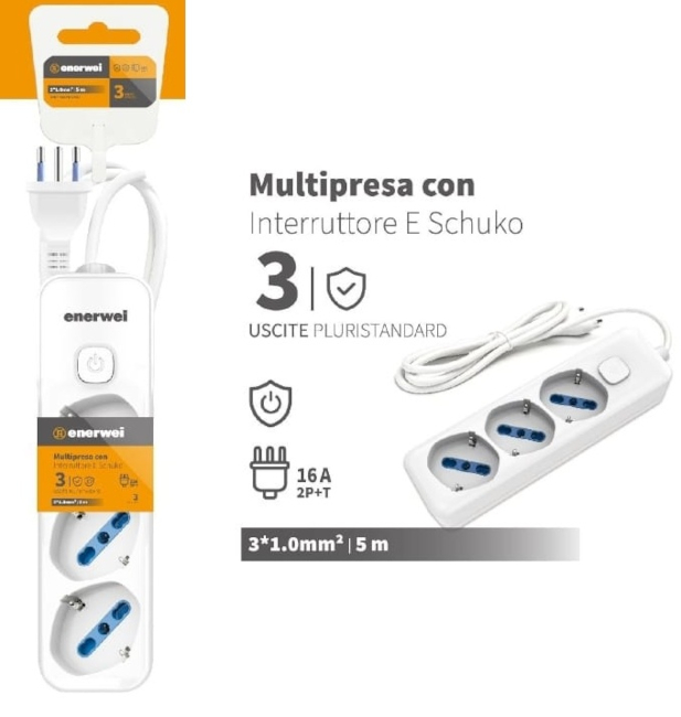MULTIPRESA CON INTERRUTTORE A 3 USCITE 16A 250V MAX 3680W 5M