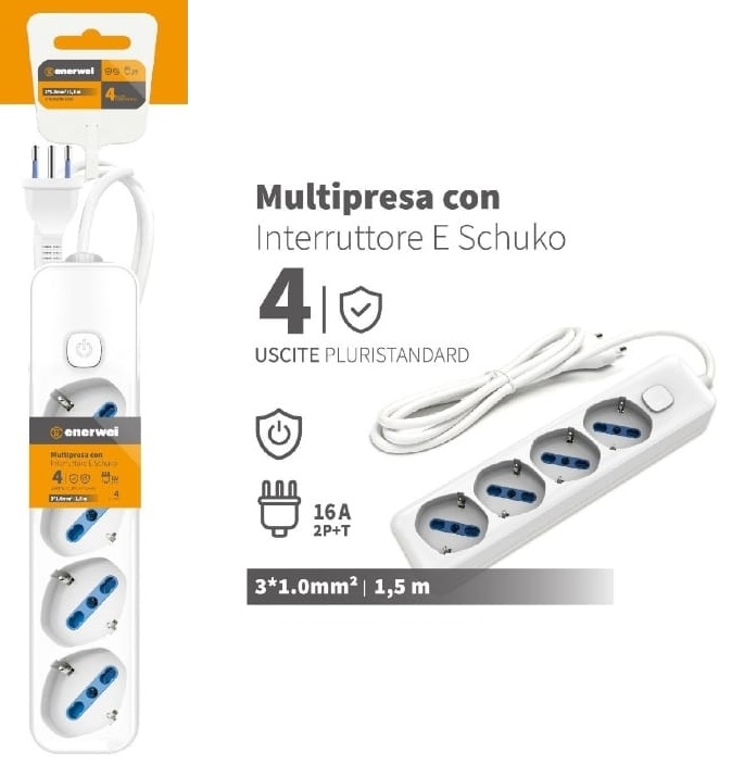 Numero di uscite: 4 prese pluristandard 16A 250V