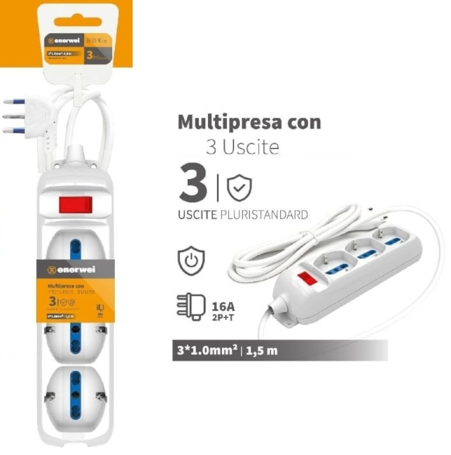 Numero di uscite: 3 prese pluristandard 16A 250V