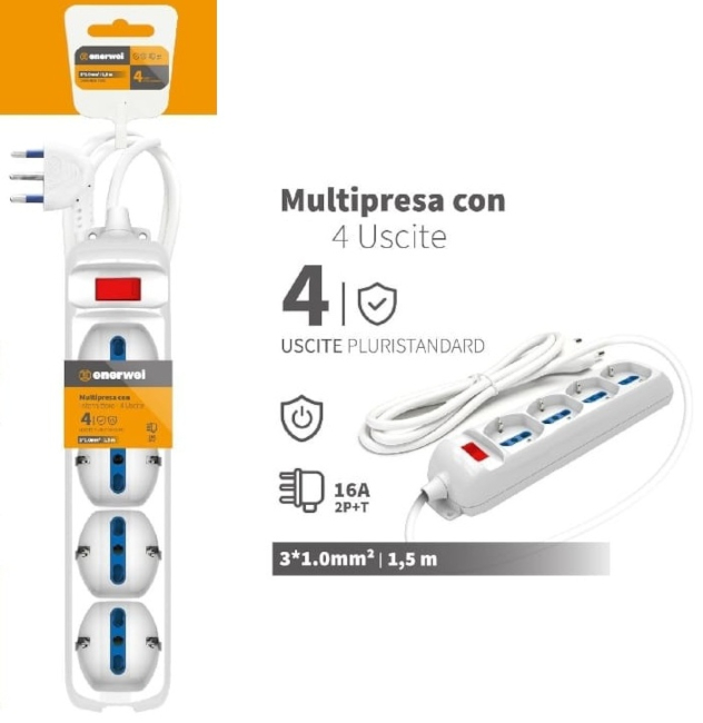 Numero di uscite: 4 prese pluristandard 16A 250V