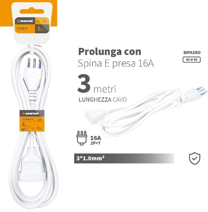 PROLUNGA CON SPINA E PRESA 16A 250V MAX 3680W 3M
