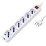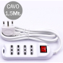 Multipresa con Cavo 1,5mt 5 Prese 10/16A 2P+T Bipasso con Interruttore Luminoso e Spina 16A 2P+T Colore Bianco