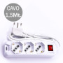 Multipresa con 3 Prese 10/16A 2P+T Bipasso/Schuko 45° e Interruttore Generale Luminoso e Cavo 1,5m Spina 16A 2P+T Colore Bianco